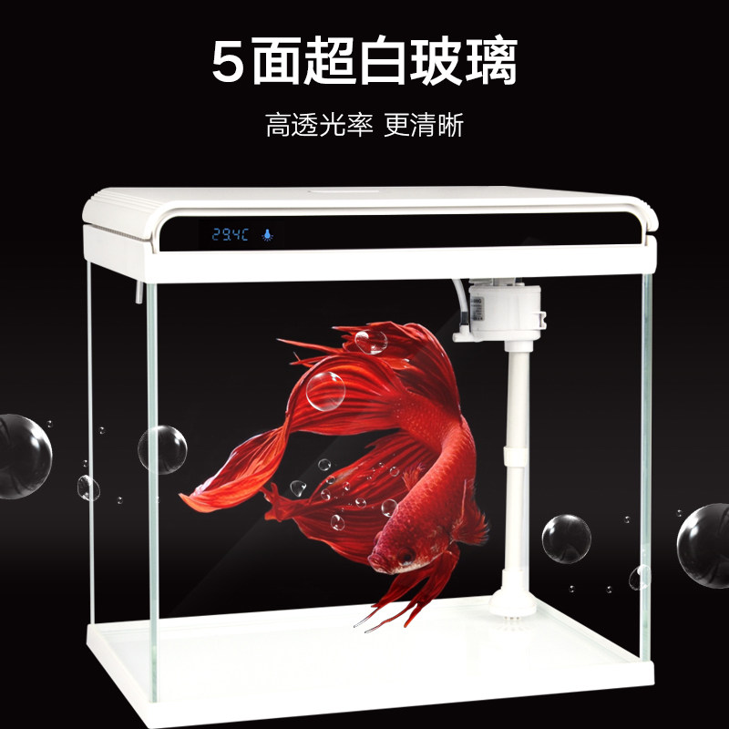 Fish tank small water-free ecological fish tank aquarium ultra-white glass goldfish tank desktop creative lazy fish tank