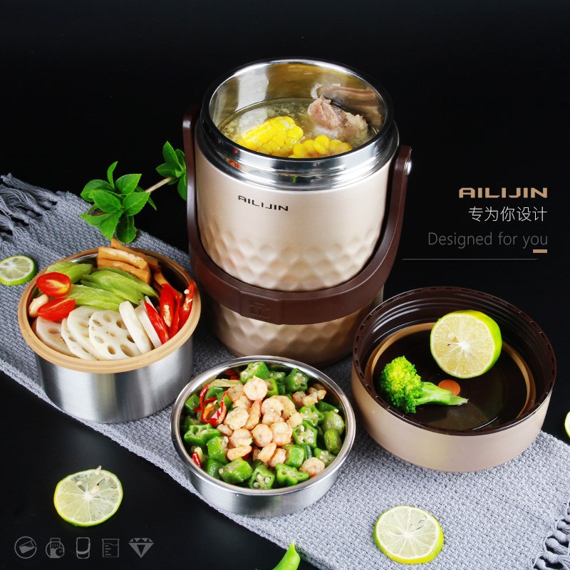 Love Likin 304 stainless steel lunch box vacuum insulated barrel overlong 2-layer 3-layer pot-stewed porridge men and women portable lunches