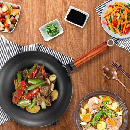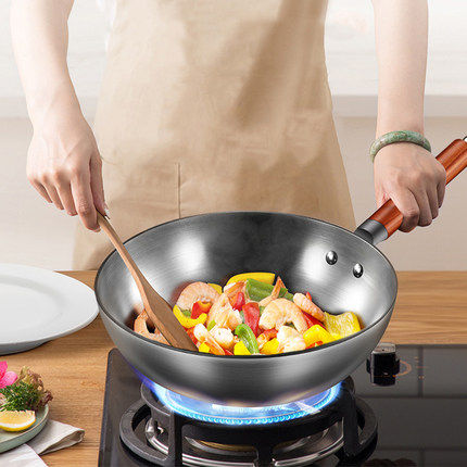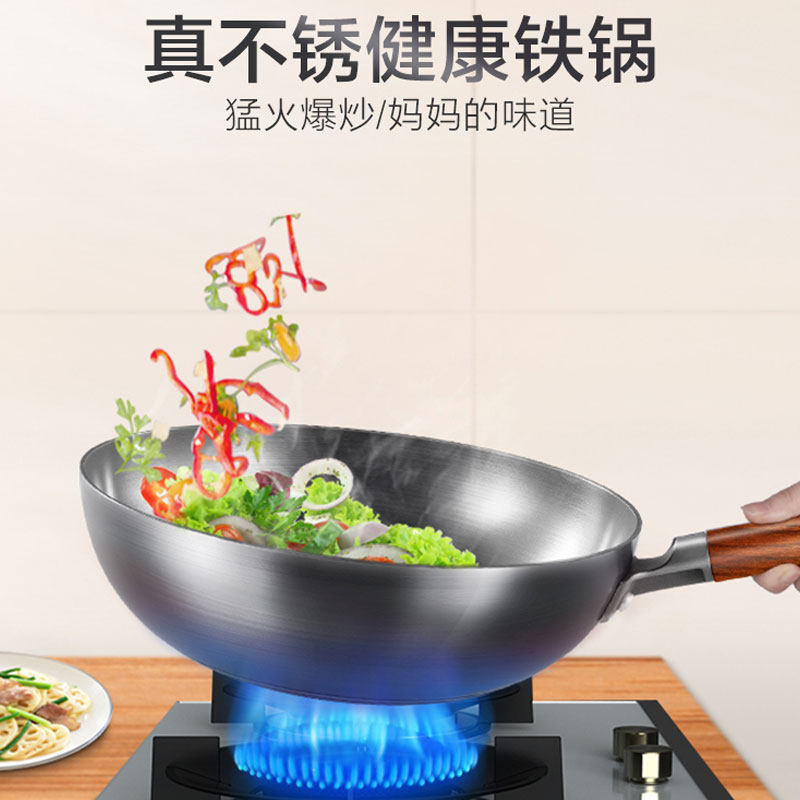 Midea large iron pot frying pan household cooking induction cooker old-fashioned gas stove suitable for gas stove frying pan without coating