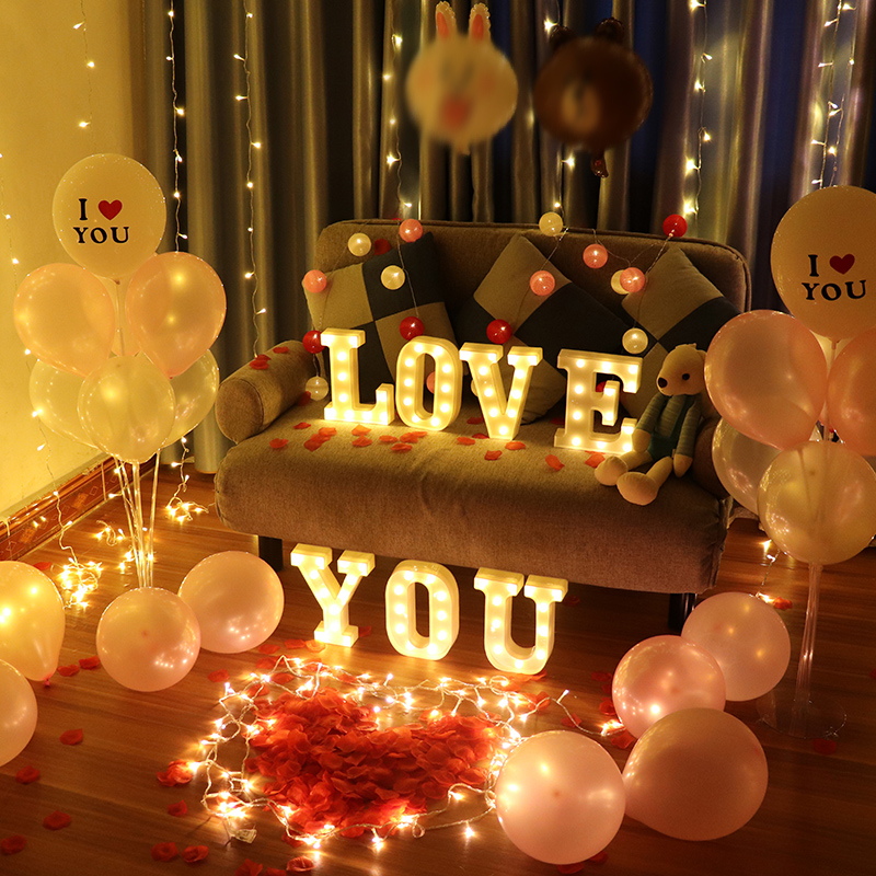 Creative proposal layout scene Valentine's Day scene KTV romantic surprise decoration vindicate letter lighting
