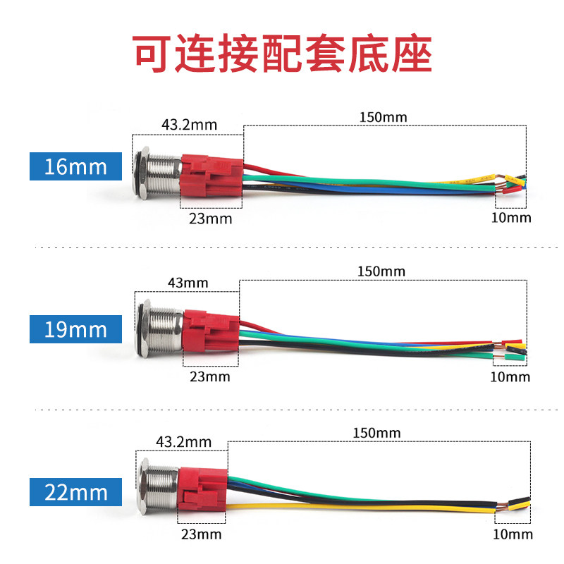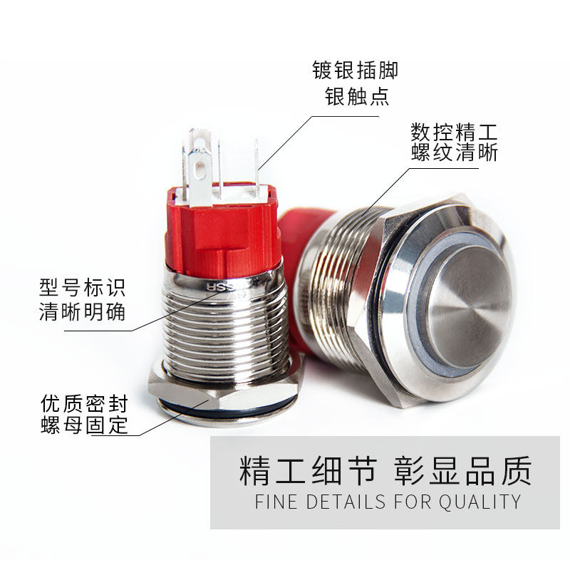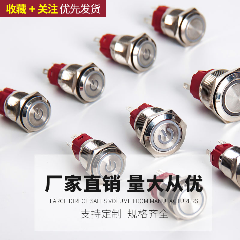 12 12 16 19 19 22MM small metal button switch self-reset self-lock LED with ring power lamp waterproof