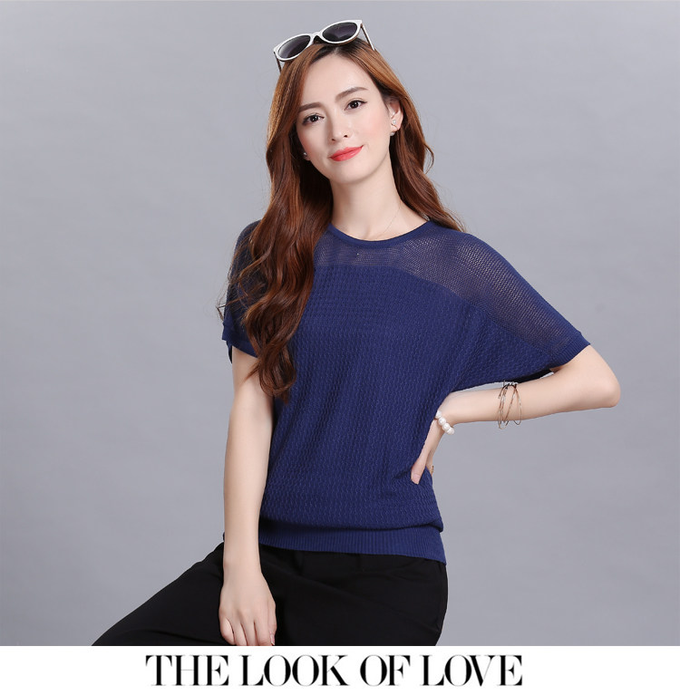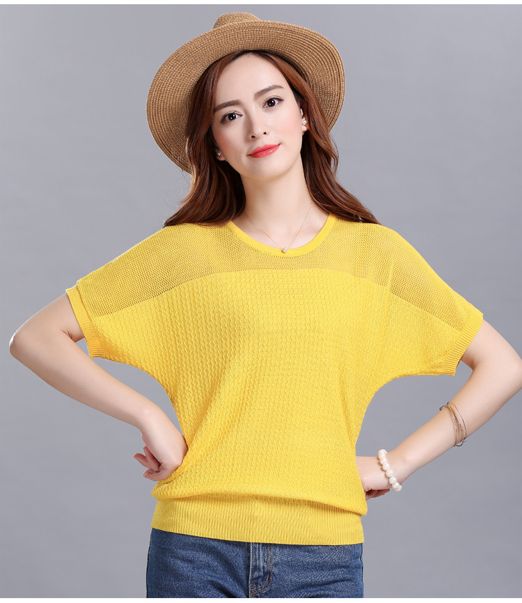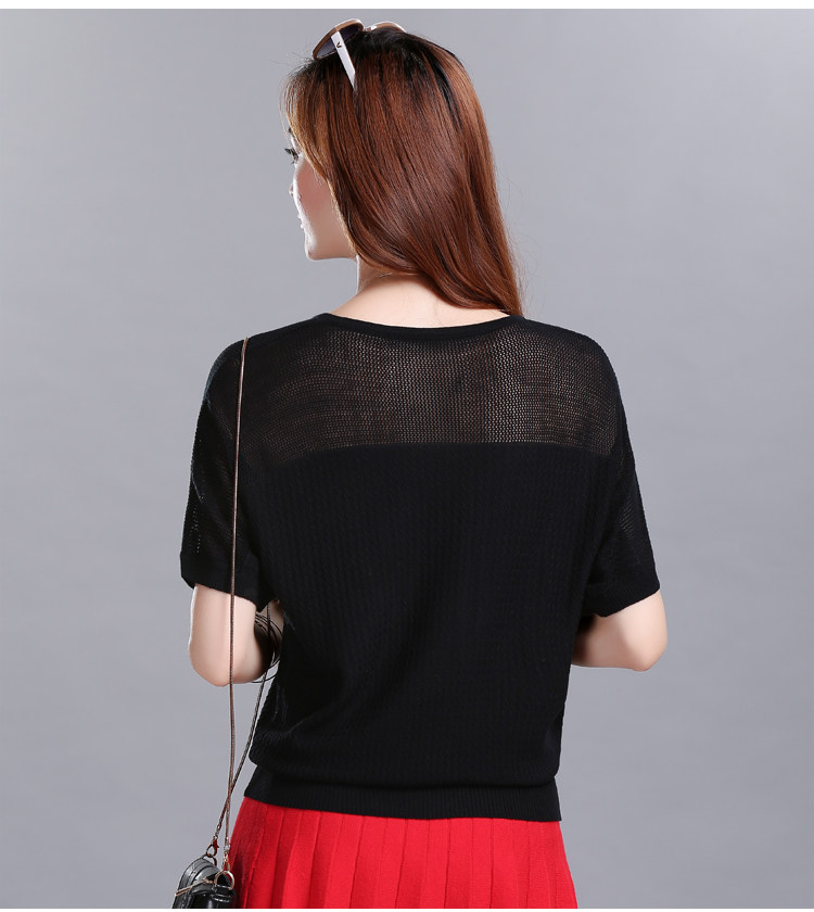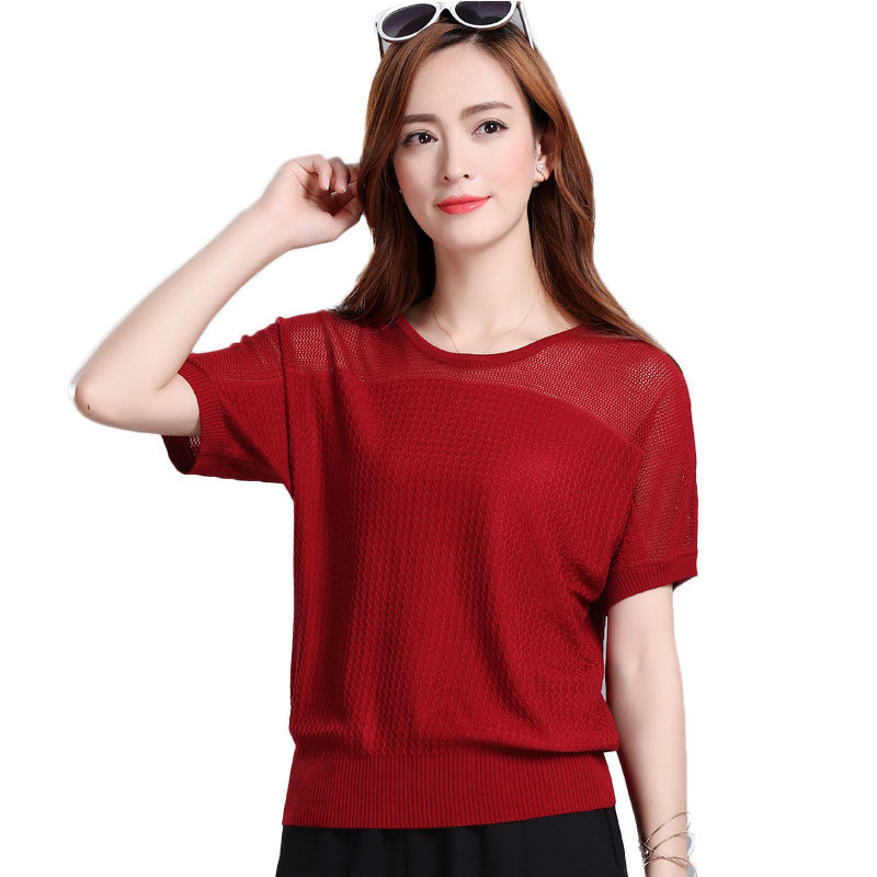 2022 Summer new Han - style short - sleeved T - shirt woman loose MM large size and ice wire knitted shirt hollowed coat