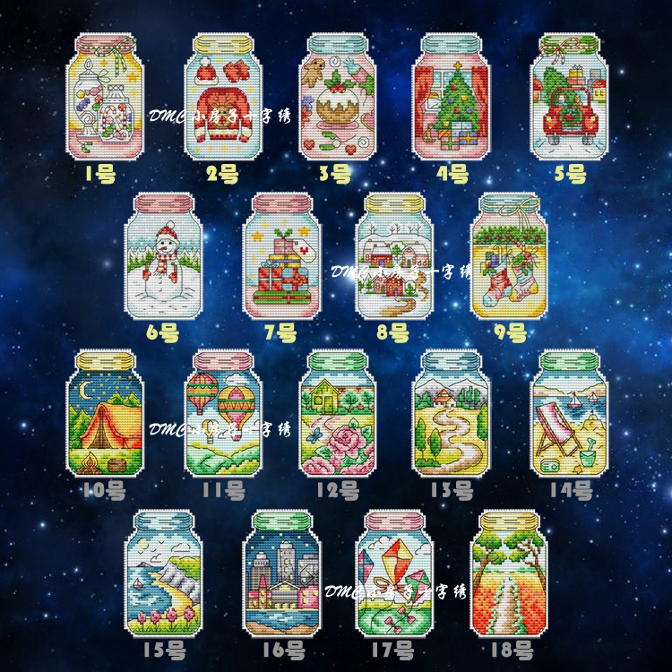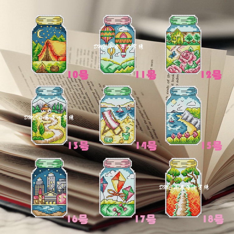 French DMC cross stitch bottle refrigerator sticker Plastic plate Creative Simple Jar Drift bottle Wishing kitchen