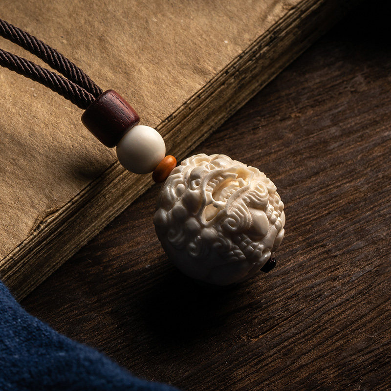 Grand Good Church Ice Material Mammoth Ivory Tusk Leopard Pendant Male Artisanal Mengfu Mammoth Tooth Carving of the Pendant Women's Necklace
