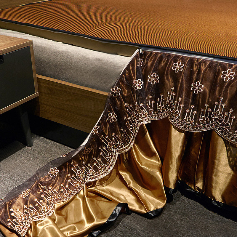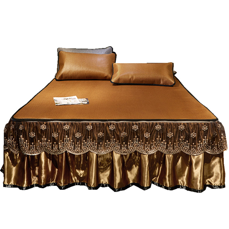 Summer lace bed skirt three-piece set 1 5m thickened foldable ice rattan seat 1 8m bed cover ice silk seat rattan seat