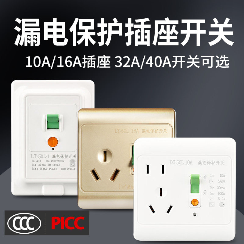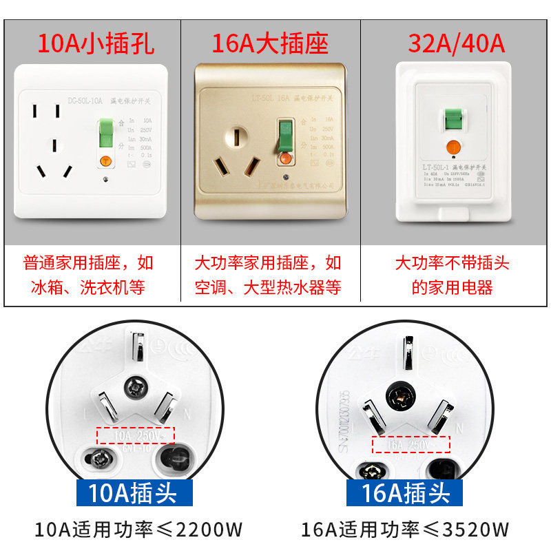 Three-hole 16A socket 2P Air switch with leakage protector Switch circuit breaker Electric water heater Air conditioner overload