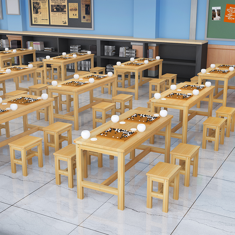 Simple solid wood Go Table manufacturer Direct sales Calligraphy Desk Pine Wood Lesson Table And Chairs Coaching Class Training Calligraphy And Painting Desk Chess