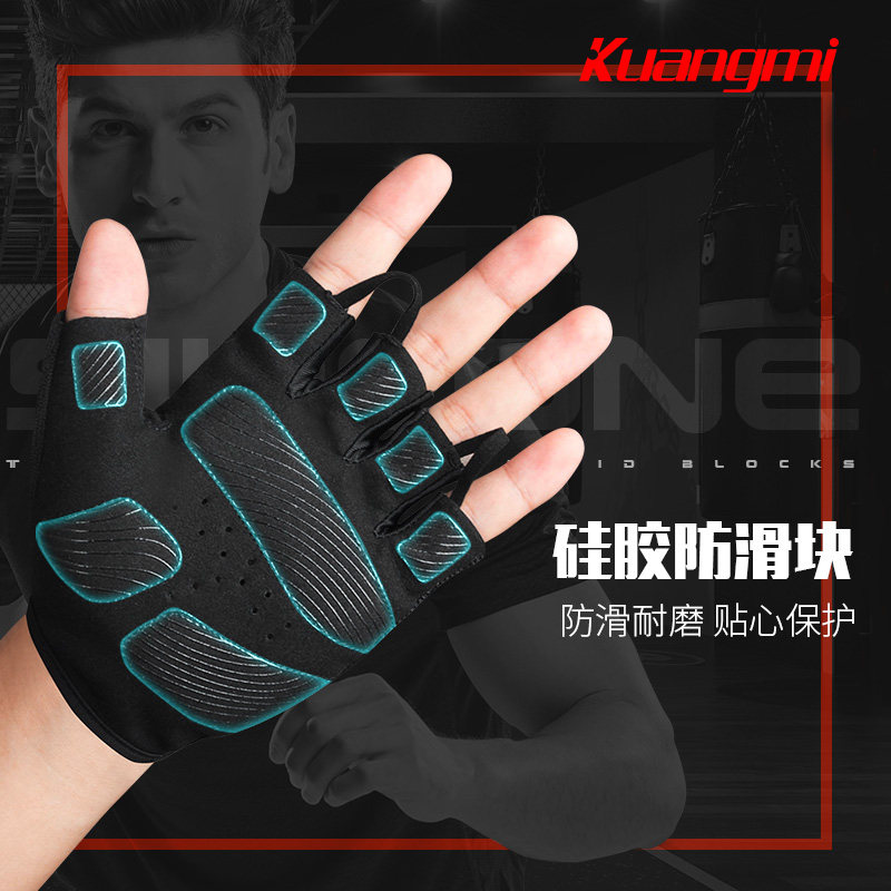 Fan kuangmi fitness gloves Sports men's and women's half-finger equipment training Single bar dumbbell pull-up wrist support