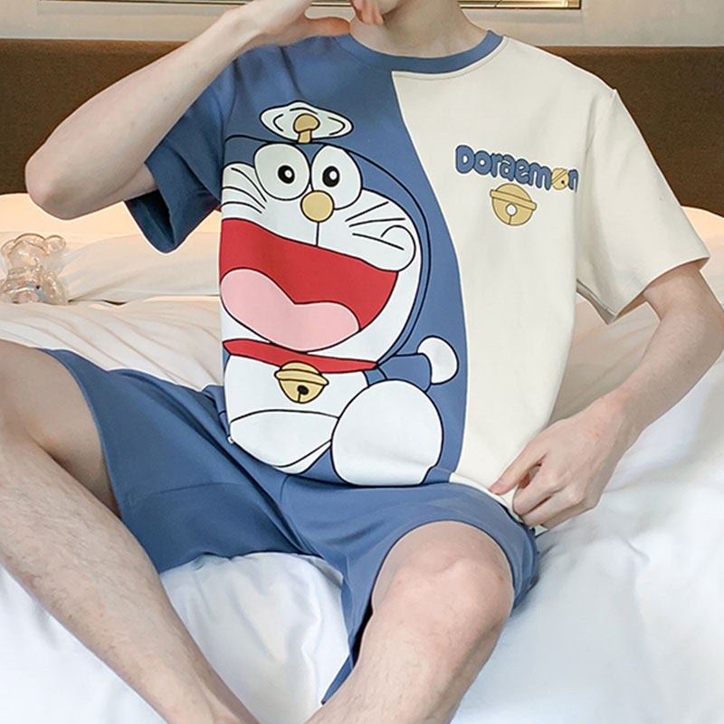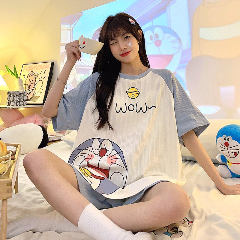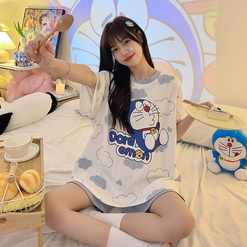 Pajamas girl short sleeve Doraemon Cartoon thin summer clinking cat machine cat weight and weight mm 200 pounds