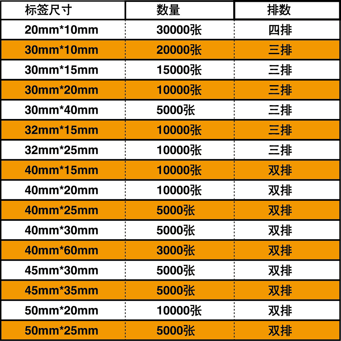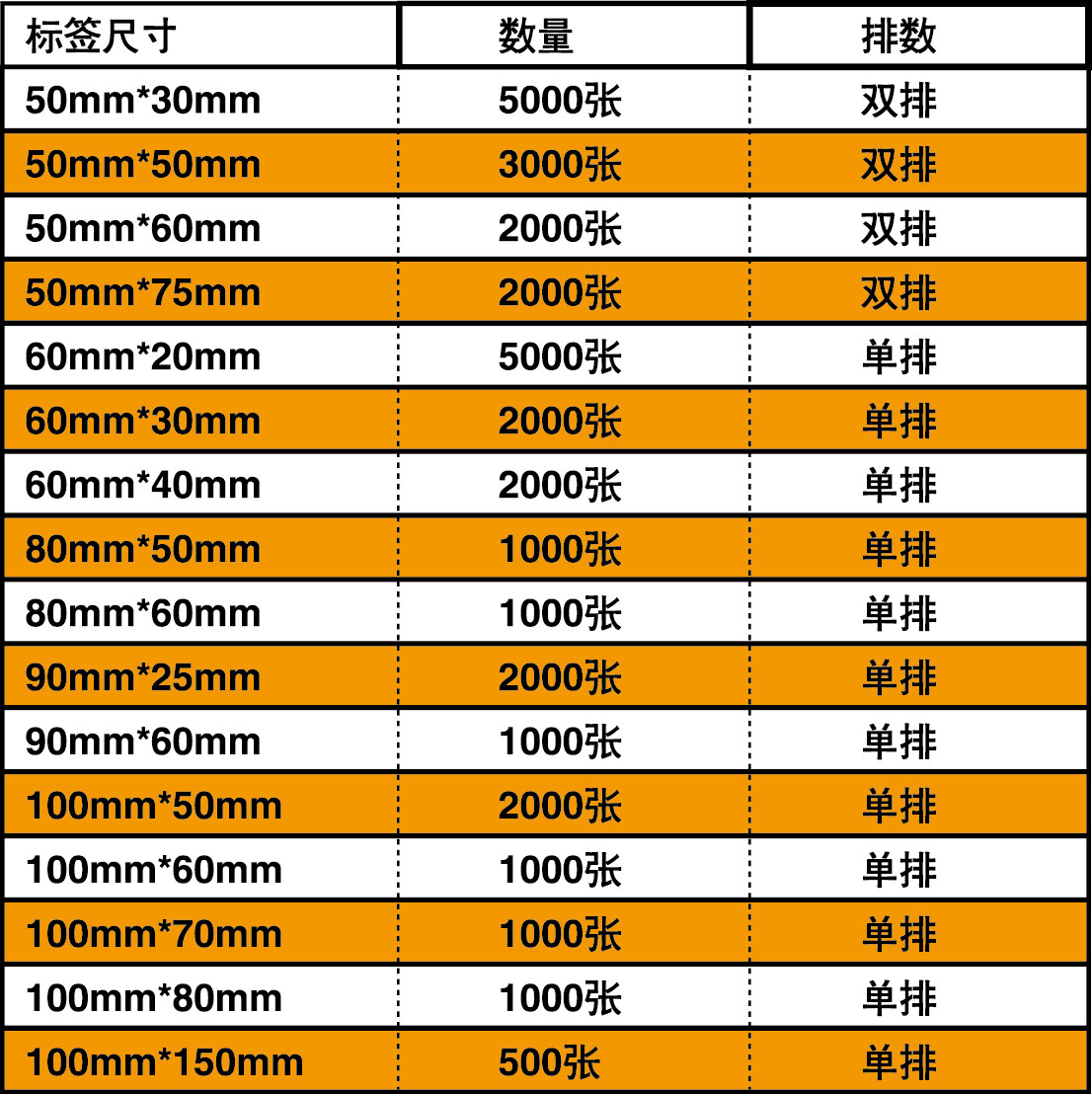 80*50mm*1000 pieces*single row