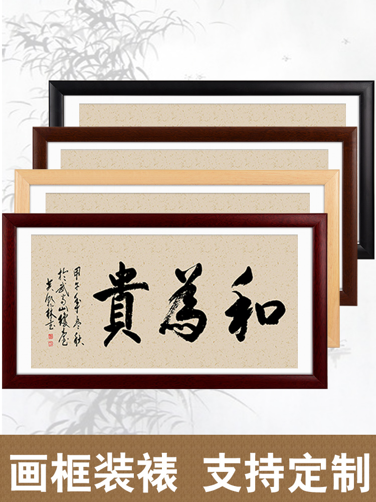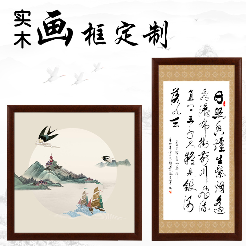 Square picture frame hanging wall 33 38 50 66 68 68 Xuan paper country painted calligraphy and framed solid wood photo frame custom