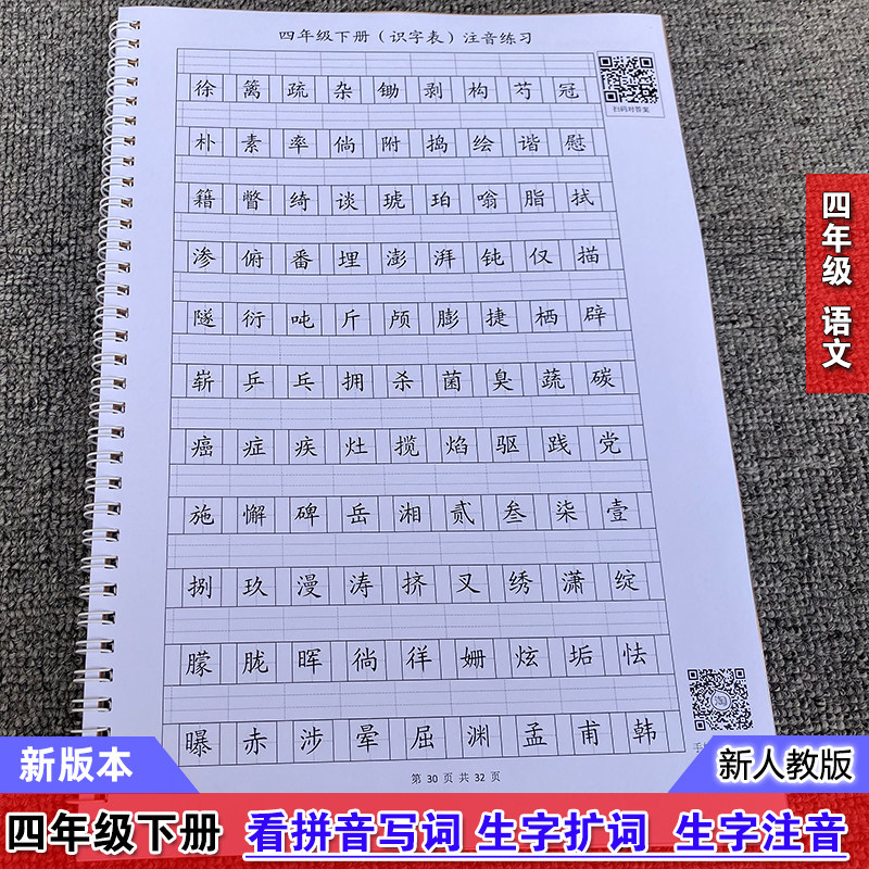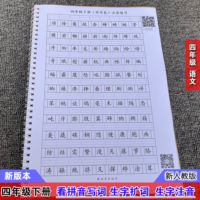 New Part Editor's edition Primary school Language 4th grade Lower register for pinyin writing words Words Expansion Letdown letdown Job Exercise Bo