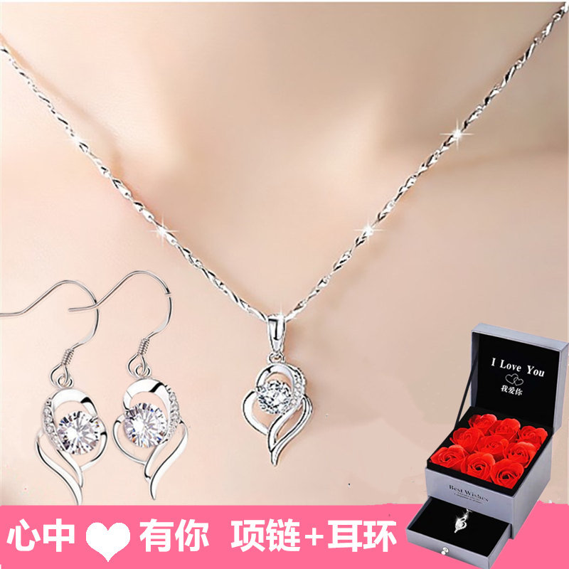 Single-minded White gold Single-minded Smart Love necklace Blue heart with you White white platinum One carat Purple one pull Ocean heart Sea blue Ocean heart Pink heart with you Necklace Blue heart with you