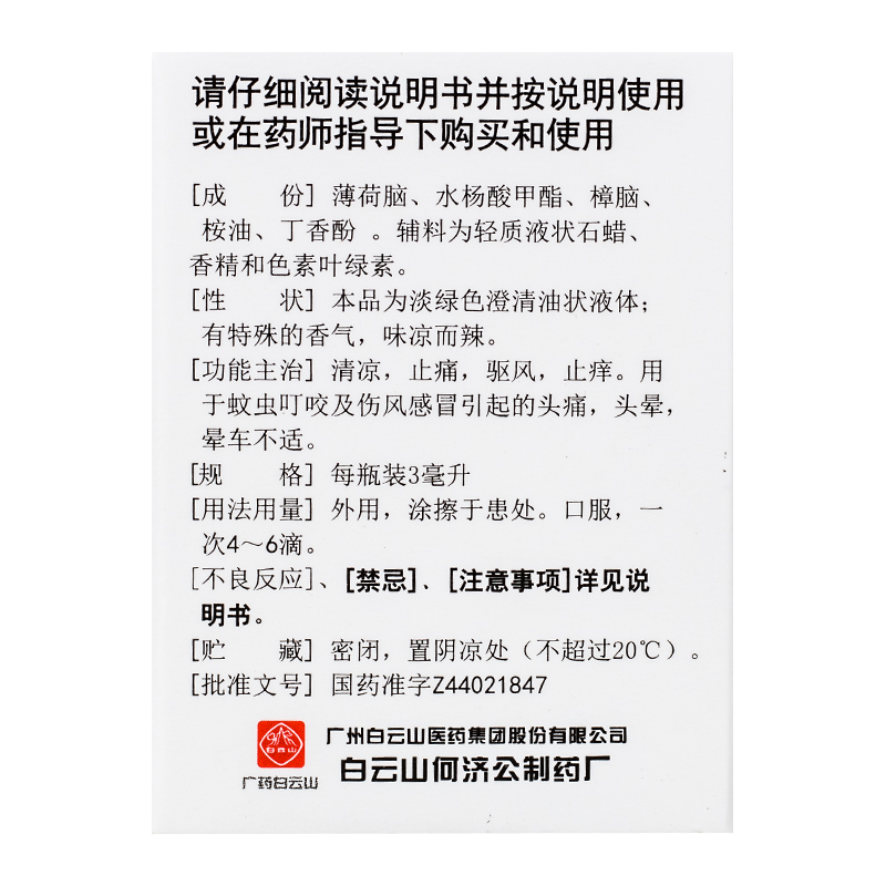 Baiyunshan Wind oil essence 3ml cool and pain-relieving mosquito bites with cold headaches and dizzy caravan