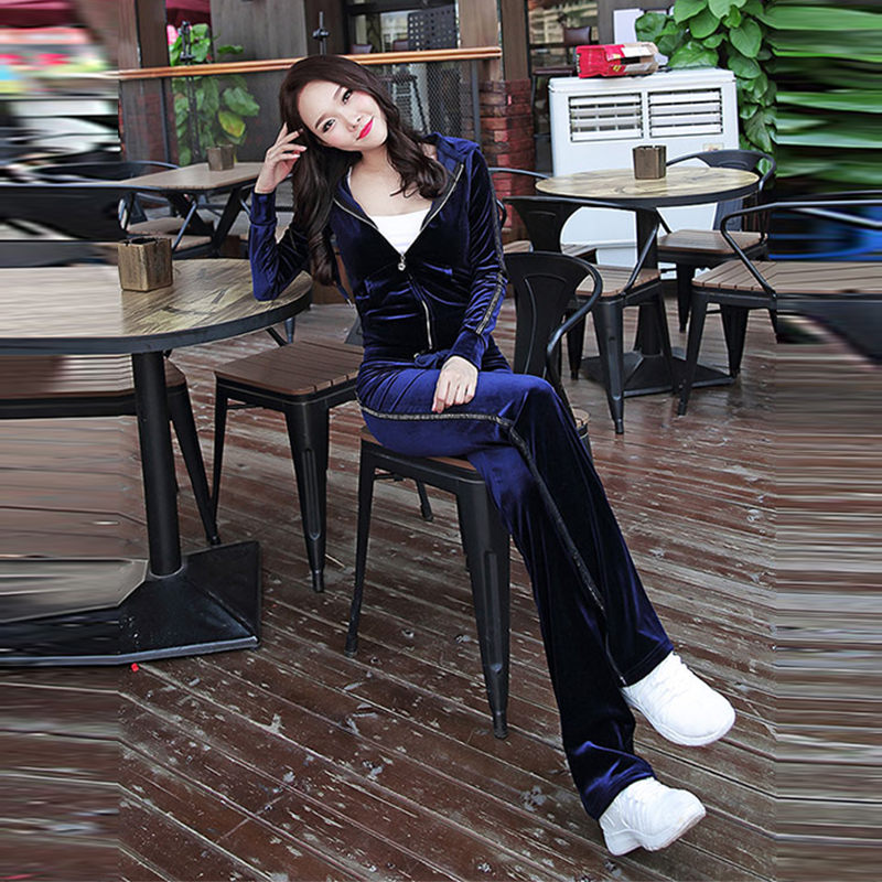 Gold velvet sports suit female spring and autumn 2019 new trendy Korean style fashion slim slim casual sweater two-piece set
