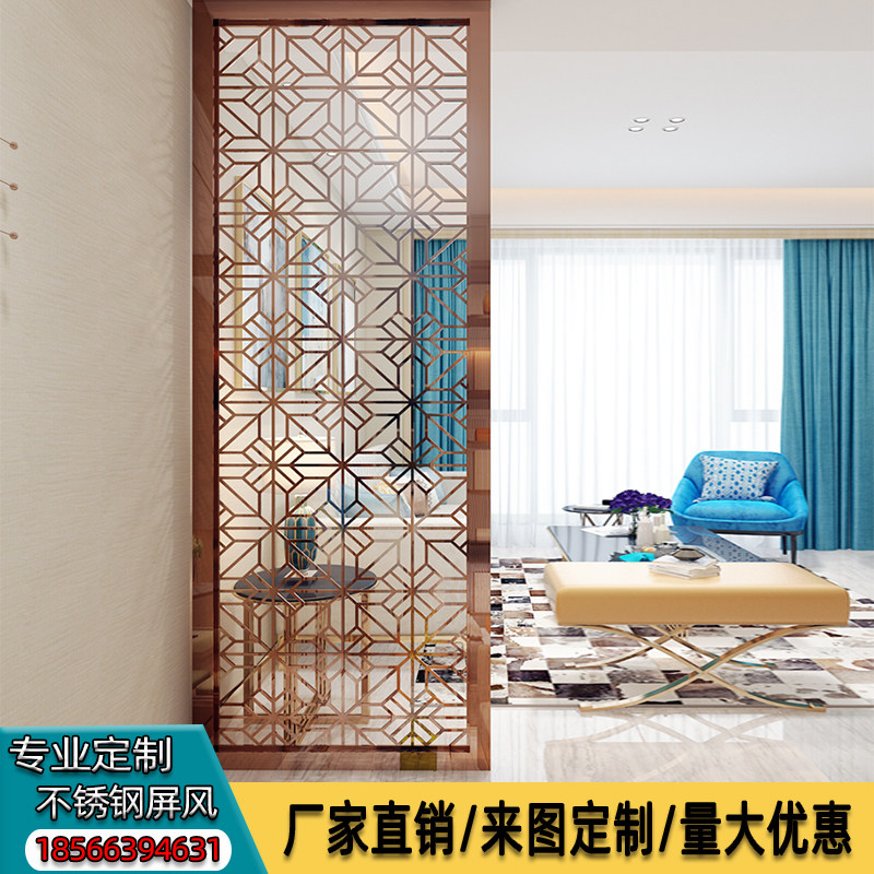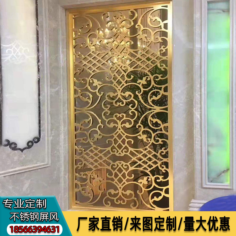 Eurostyle Living Room Stainless Steel Rose Metal Screen Champagne Hollowed-out Carved Flower Lattice Partition Genguan Yellow Black Titanium Alloy Mirror Surface