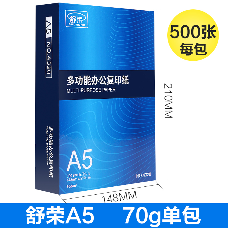 Shu Rong A5 printing paper single pack 500 sheets 70g g office paper copy white paper full box 10 packaging a5 paper