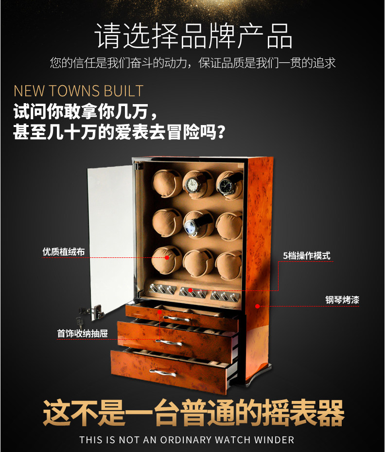 9 watch Rocker Mechanical watch Automatic winding watch box Turntable Turntable box Storage box Watch box Automatic mechanical watch