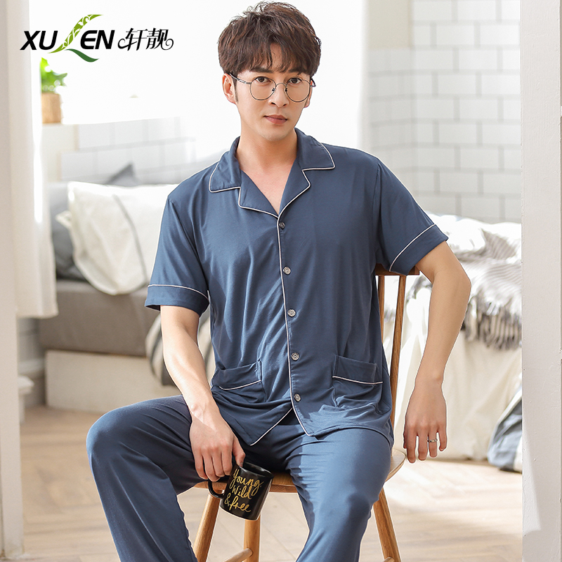 Pajamas men's summer short-sleeved trousers modal thin loose plus fat size ice silk cool home clothes suit
