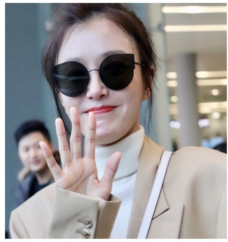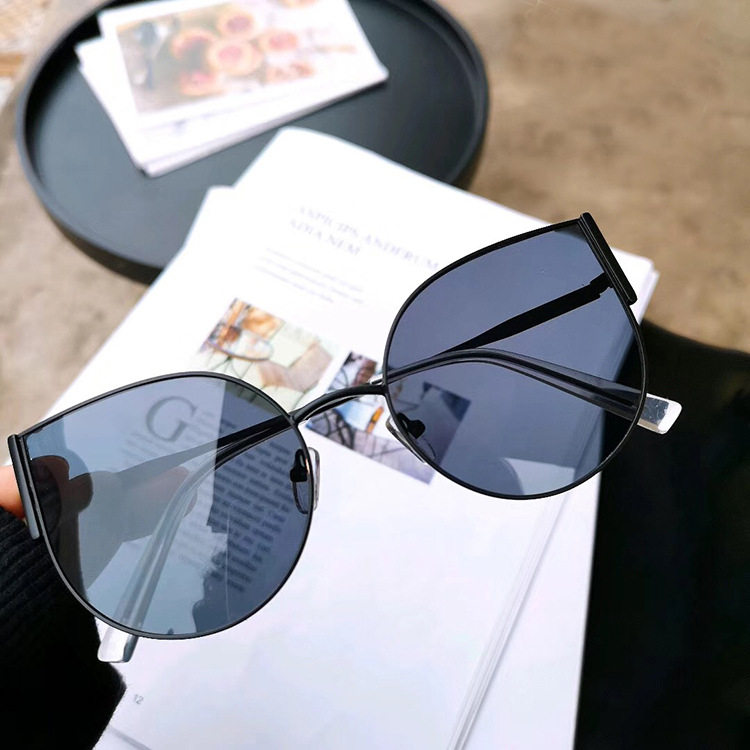 2020 new sunglasses female spring Korean version of the large frame cat's eye retro Hong Kong wind sunglasses V brand black super glasses