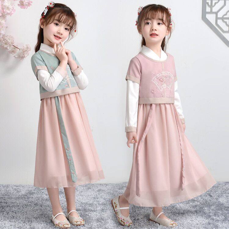 Hanfu Girl China Wind Child Clothing Spring Autumn Comeback Ancient Baby Donuts Little Girl Ancient Dress With Skirt Improvement Children's Ru Skirt