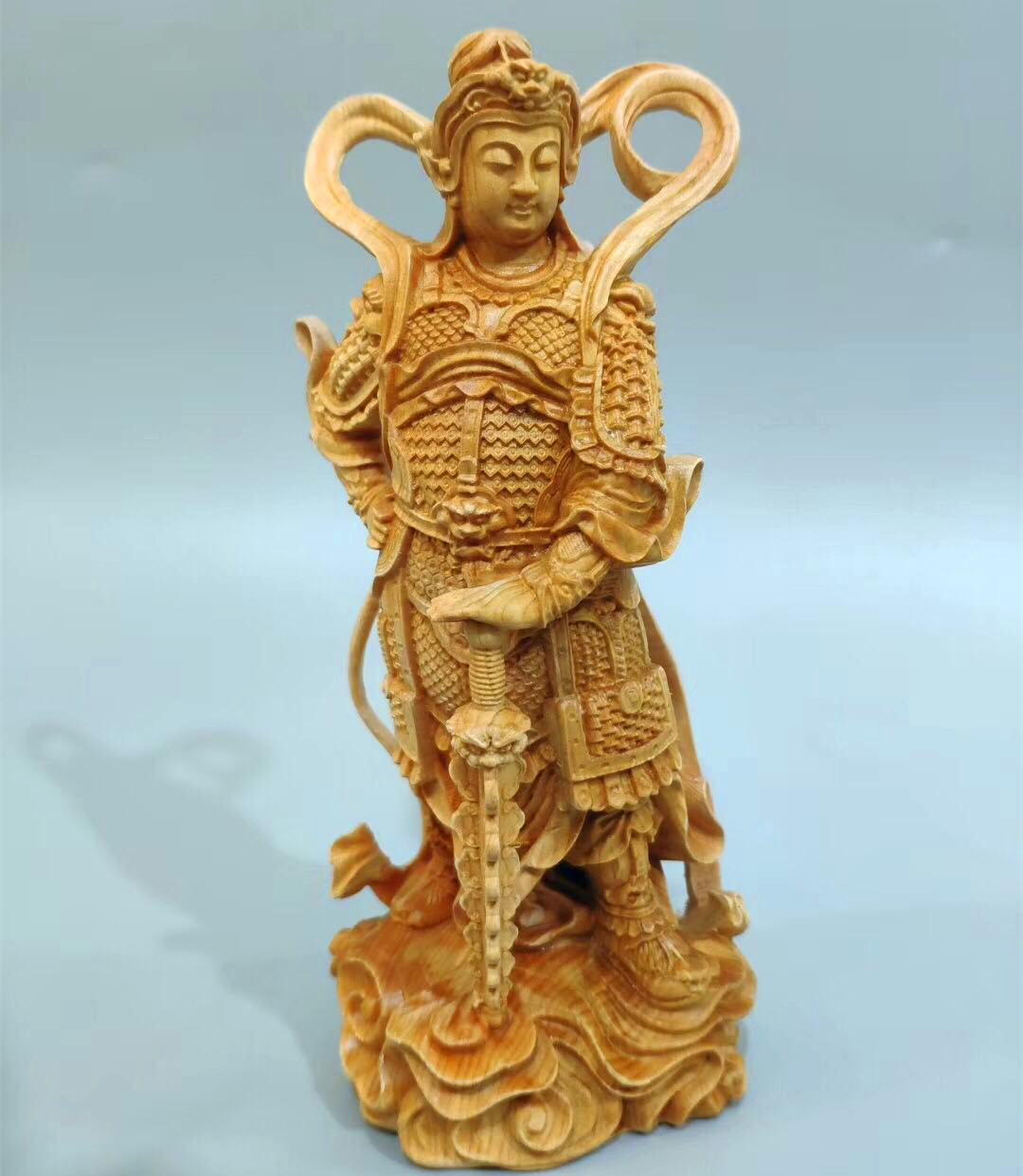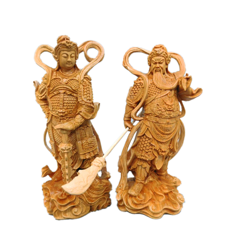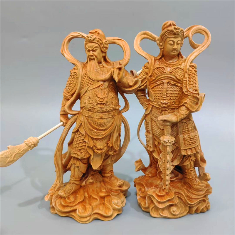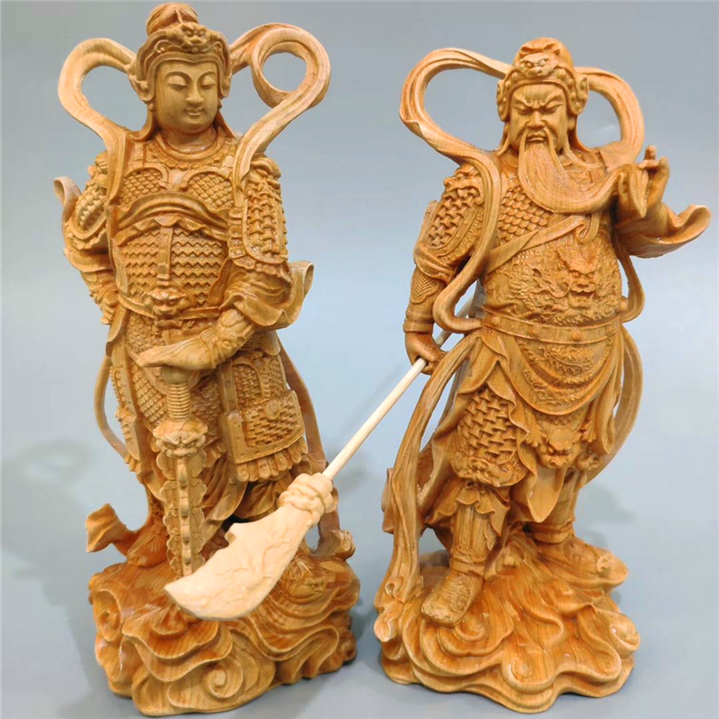 Boxwood carvings of Garan Veduo Bodhisattva left and right hair-care Buddha statues for ornaments Guan Gong Wealth God statue for home use