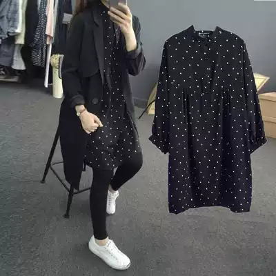 Pregnant women Summer new Korean version of long short sleeve chiffon dress large size loose 200 Jin base shirt tide