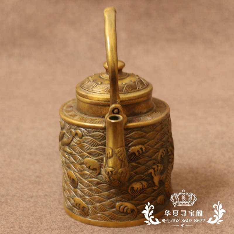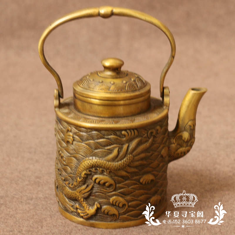 New home decoration old objects collection of pure copper kettle antique copper equipment large Qing drying bronze pot