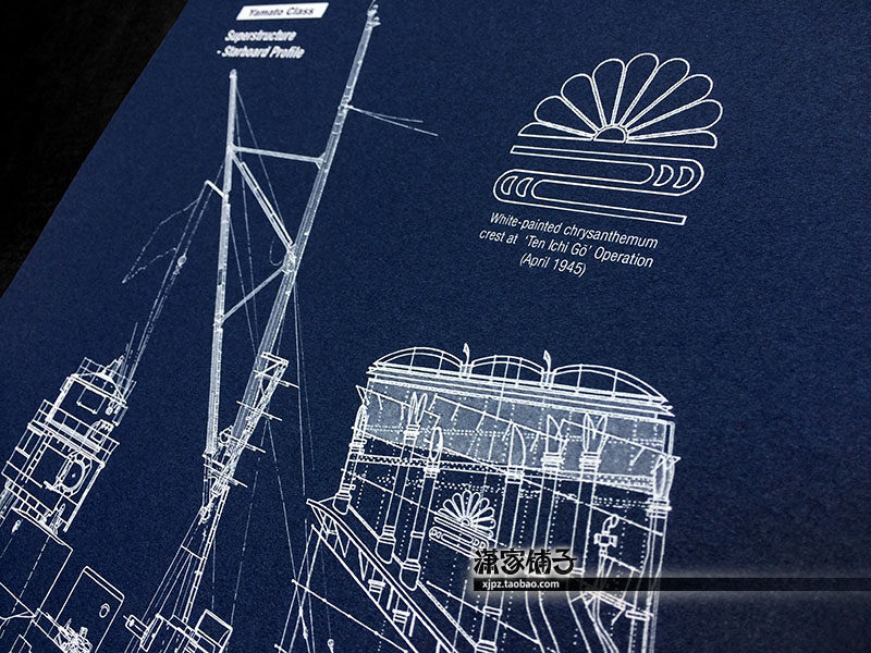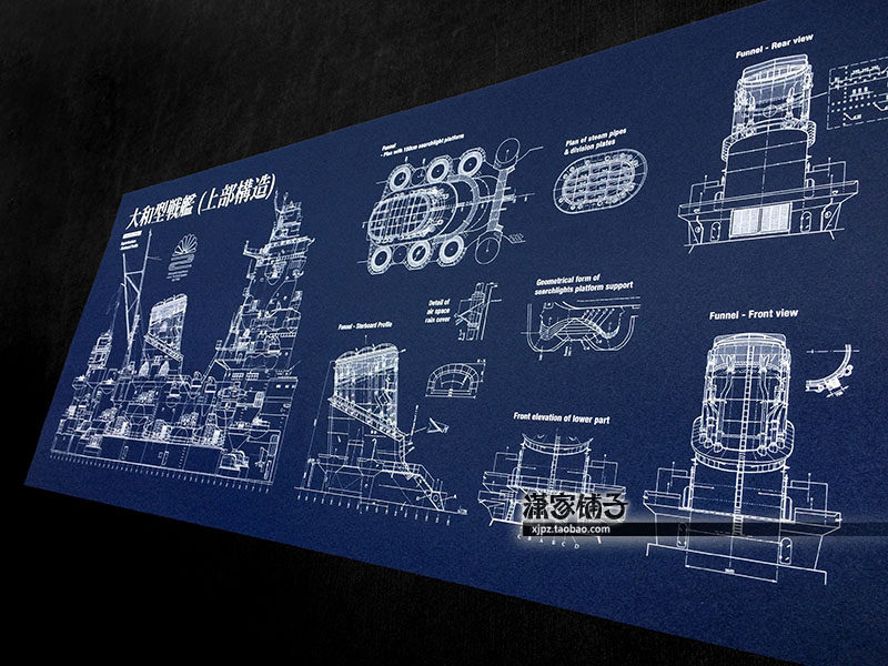 World War II giant ship Yamato-class battleship superstructure (11) structural plan blueprint poster decoration painting