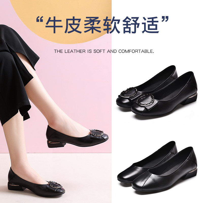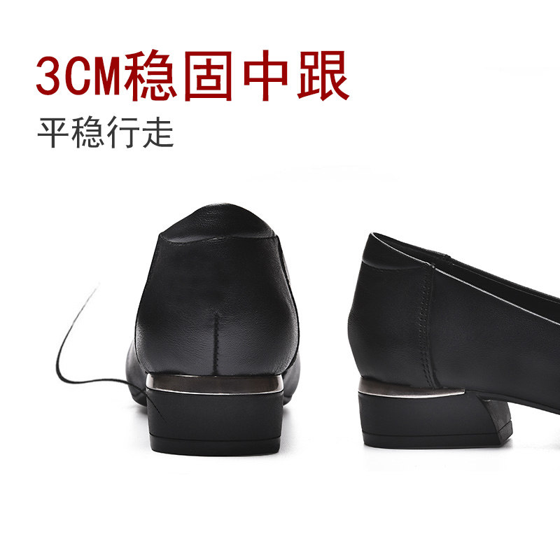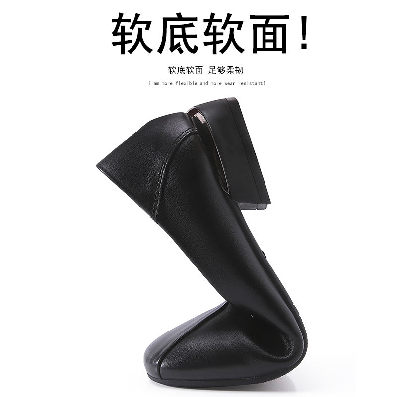 2022 New Spring and Autumn Models of Genuine Mother's Shoes Soft Sole Comfortable Medium Heel Leather Shoes Shallow Mouth Thick Heel Work Shoes Single Shoes Women