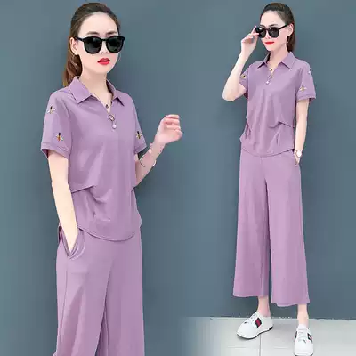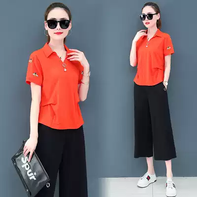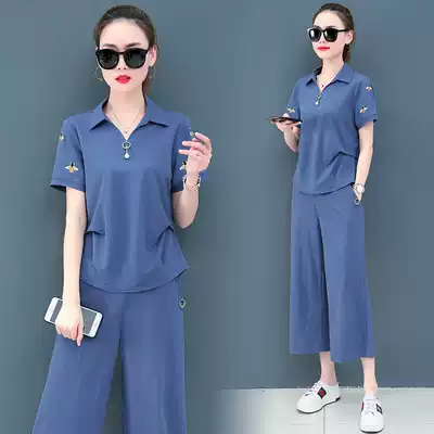 Large size fashion sports casual set women Summer 2020 New loose shirt wide leg pants casual wear two-piece tide