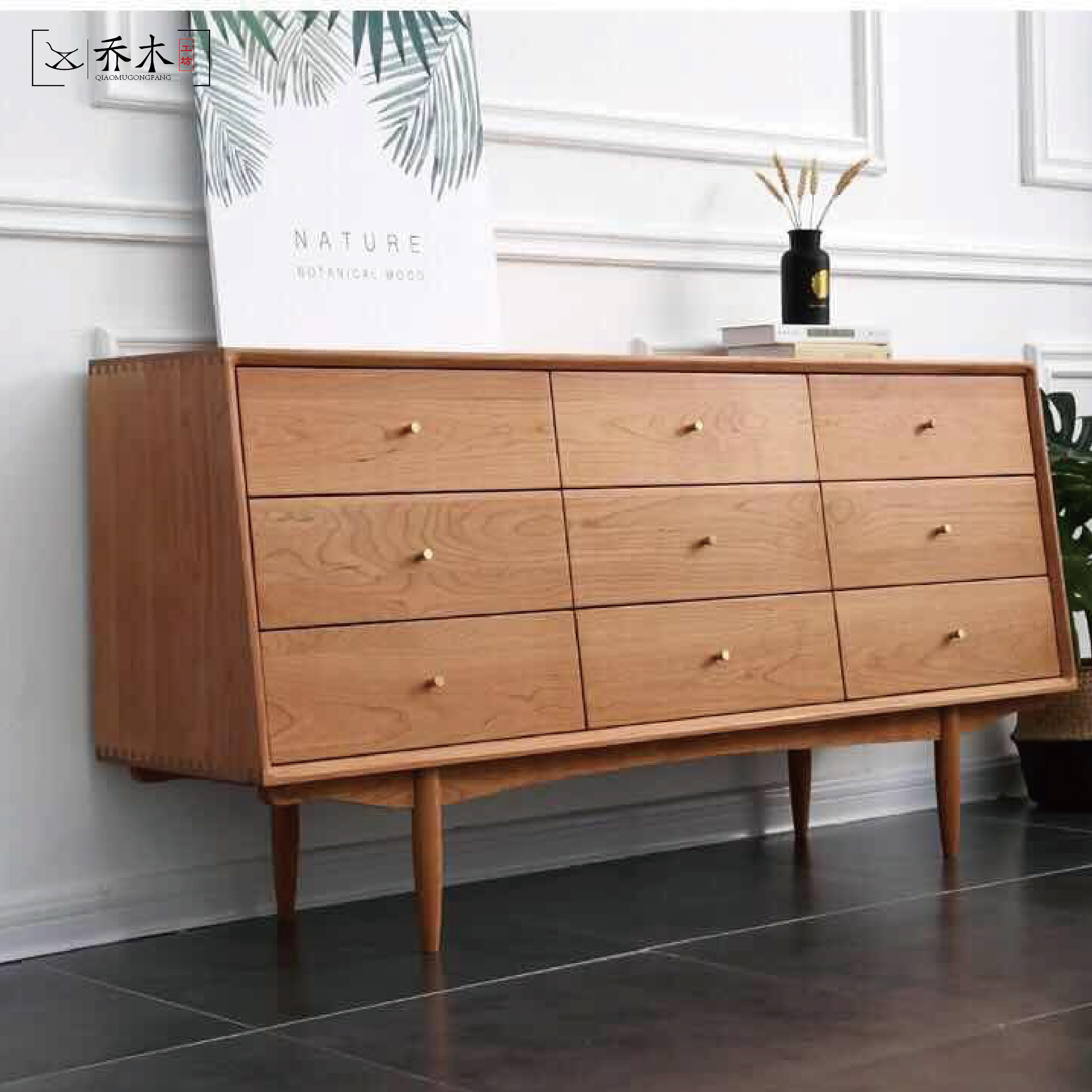 Nordic Japanese-style cherry wood black walnut solid wood nine-drawer cabinet modern minimalist multi-drawer storage cabinet living room bedroom