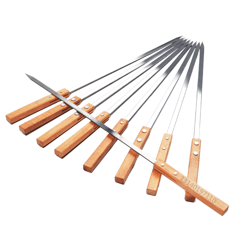 50 long stainless steel barbecue wooden handle flat sign lengthened leg of lamb thickened large string lengthened stainless steel wooden handle flat sign