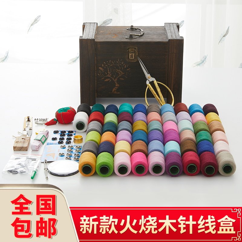 Sewing box set home high-end retro handmade solid wood large size finishing storage box sewing bag wedding