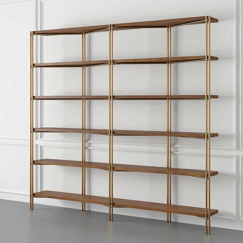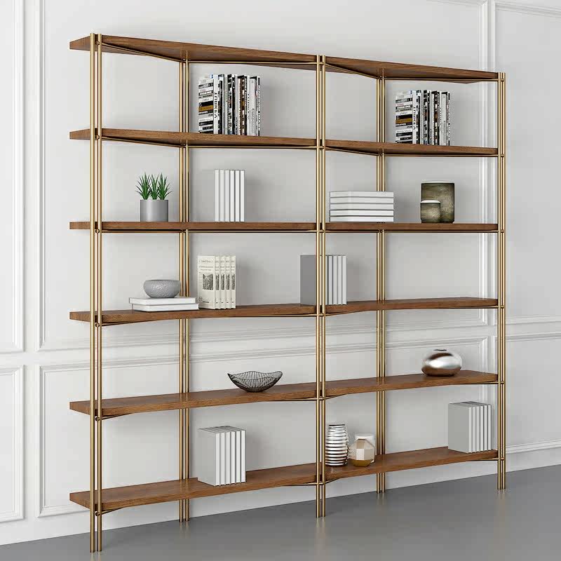 Nordic gold shelf Floor-to-ceiling wall bookcase Wrought iron solid wood living room storage creative shelf lattice display rack