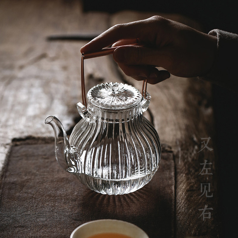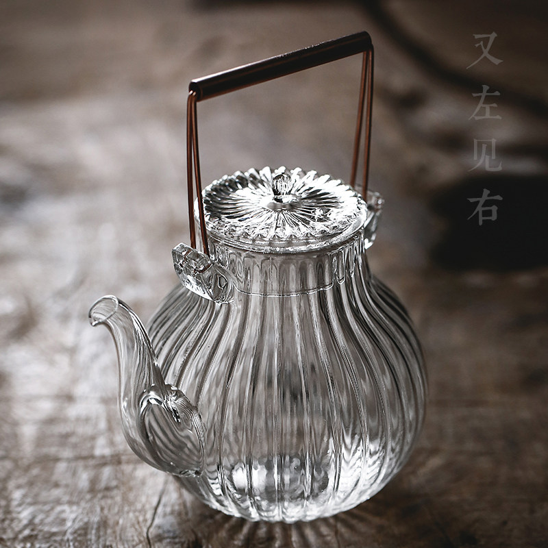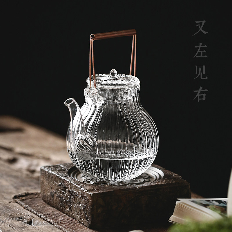 Japanese high temperature thickened glass teapot Household heat-resistant glass tea kettle Black crystal stove cooking teapot single pot