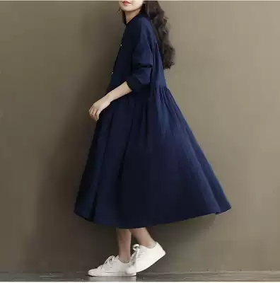 Pregnant women's autumn new Korean version of long-term dress cotton linen plus fat plus size long sleeve autumn loose skirt