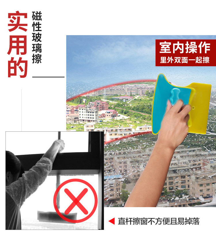 Thickened double-layer three-layer glass window wiper broken bridge aluminum vacuum tempered super strong magnetic scraping high-rise double-sided housekeeping