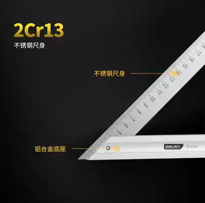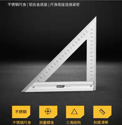 Deli stainless steel triangle steel angle ruler straight angle ruler measuring tool double-sided angle ruler 150 200mm