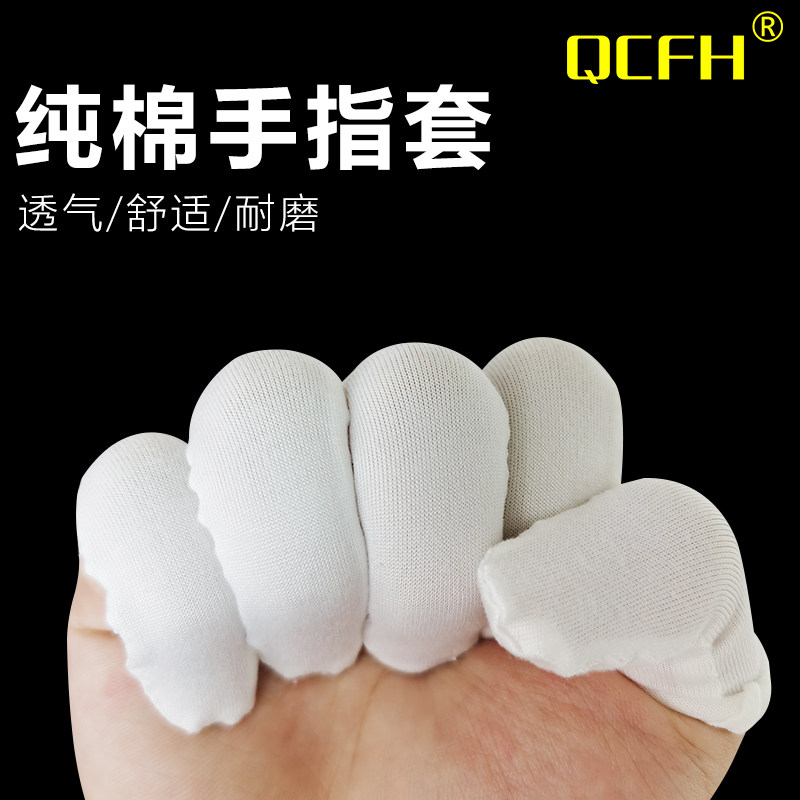 Pure Cotton Fabric Fingertip Full Cotton Sweat Buru Pau Finger Sleeve Breathable Anti-Dust Turning Point Banknote Thickening Non-slip Wear Resistant White Color