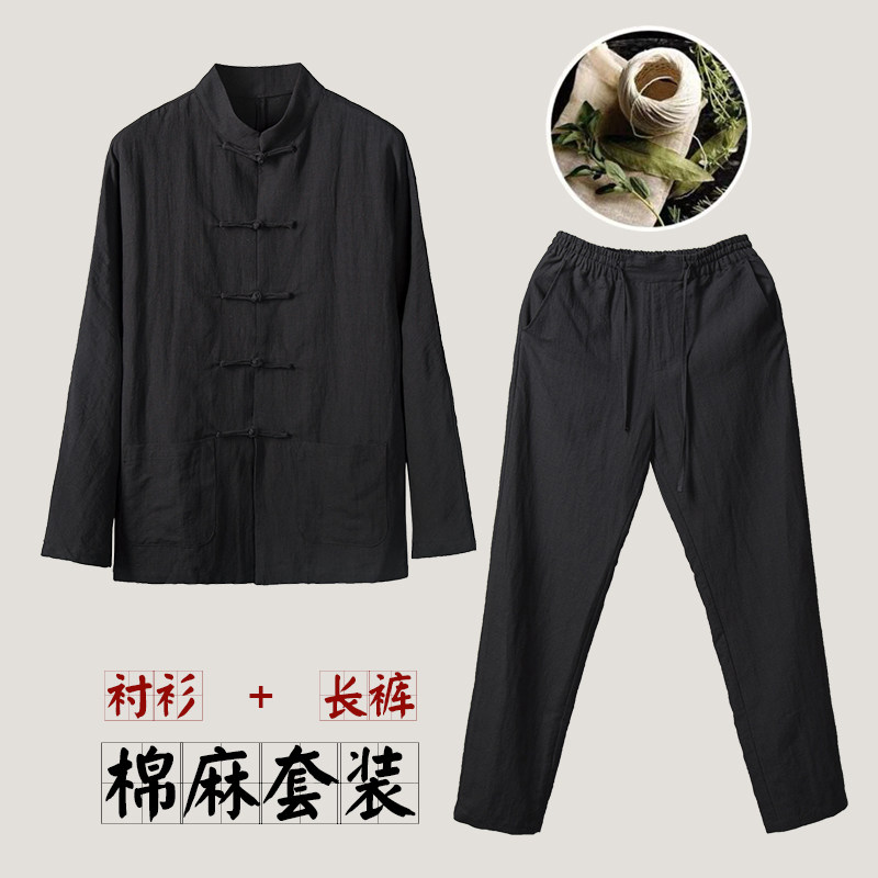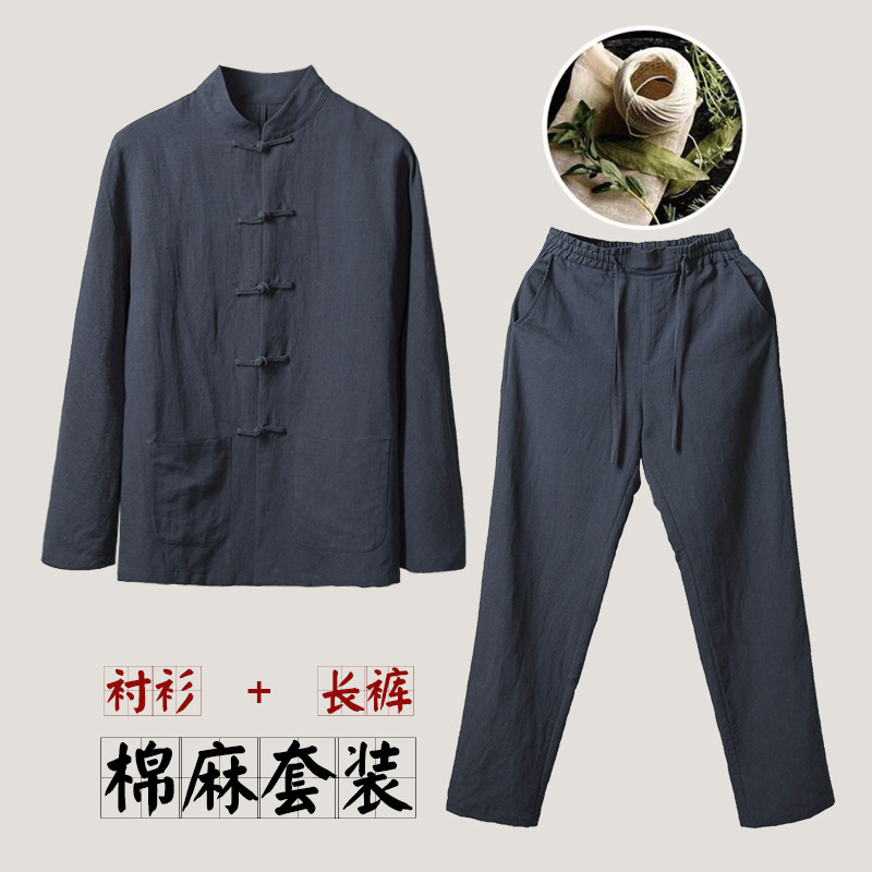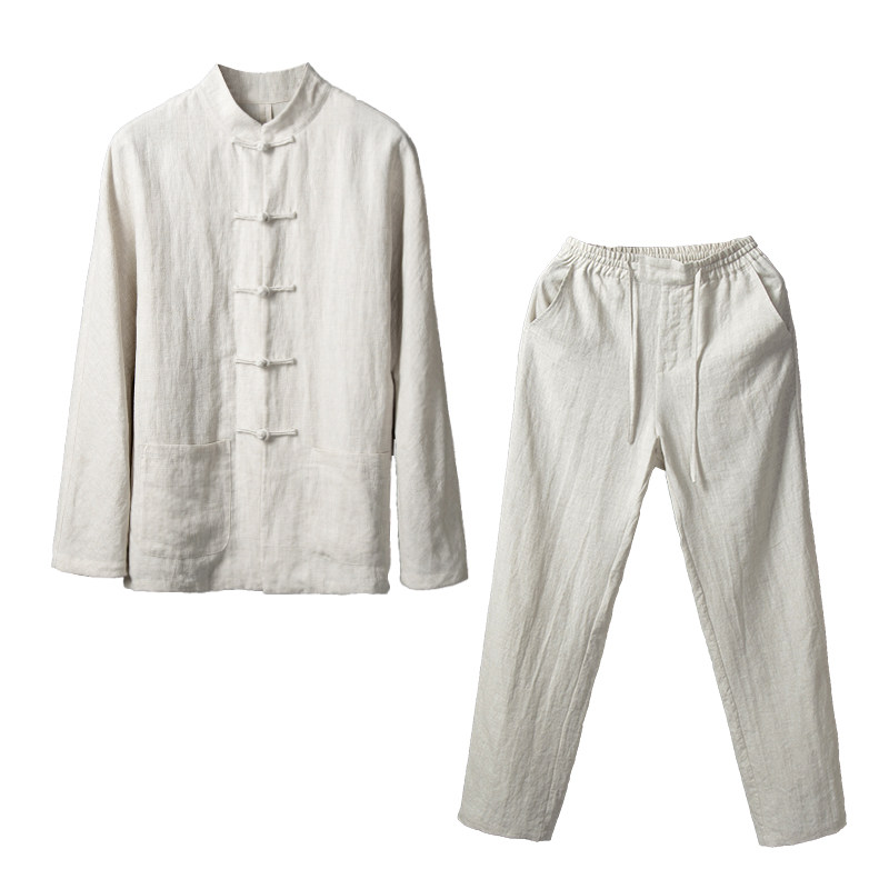 Chinese Wind Suit Men's Clothing Slim Fit Don Cotton Linen Shirts Two Sets Retro Style Linen Middle-aged Men's Spring Summer Season