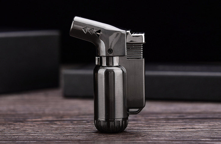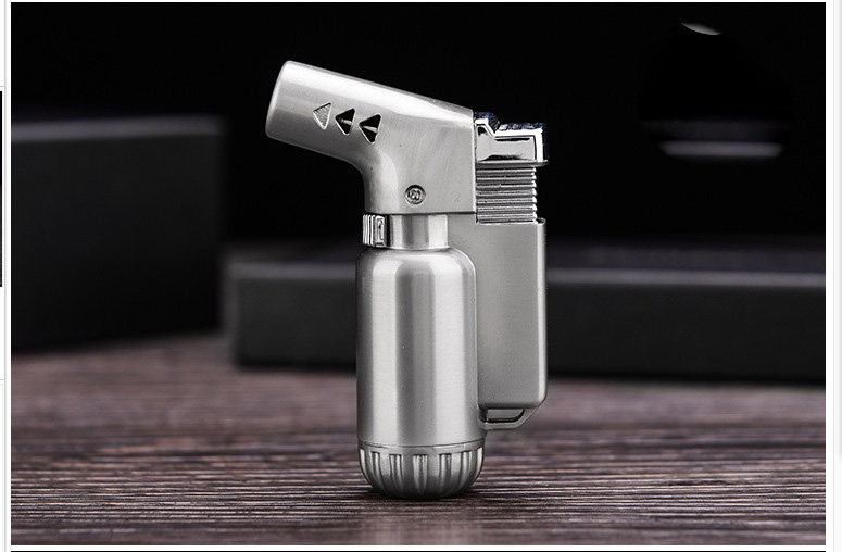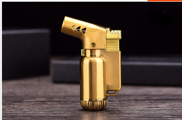Mini small metal spray gun lighter inflatable windproof lighter gold straight filling blue flame with one key lock fire