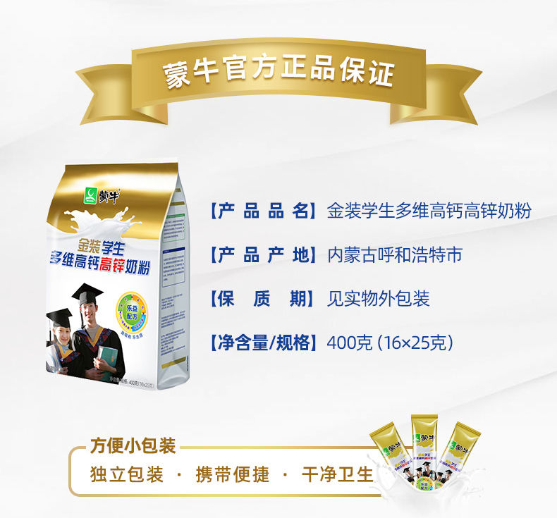 Monox Gold Dress Student Multidimensional High Calcium High Zinc Milk Powder 400g * 2 Bagged Children Adolescent Students Nutritious Milk Powder