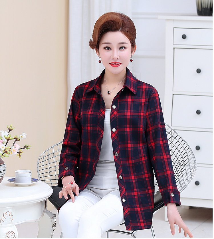 Mid-aged women's dress Long sleeves shirt 2021 new middle aged ladies blouses cardio-hoodie spring dress Mom dress checkered shirt