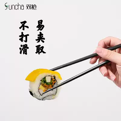 Double gun alloy chopsticks anti-scalding home Japanese cooking chopsticks non-slip pointed stainless food chopsticks colorful 10 pairs