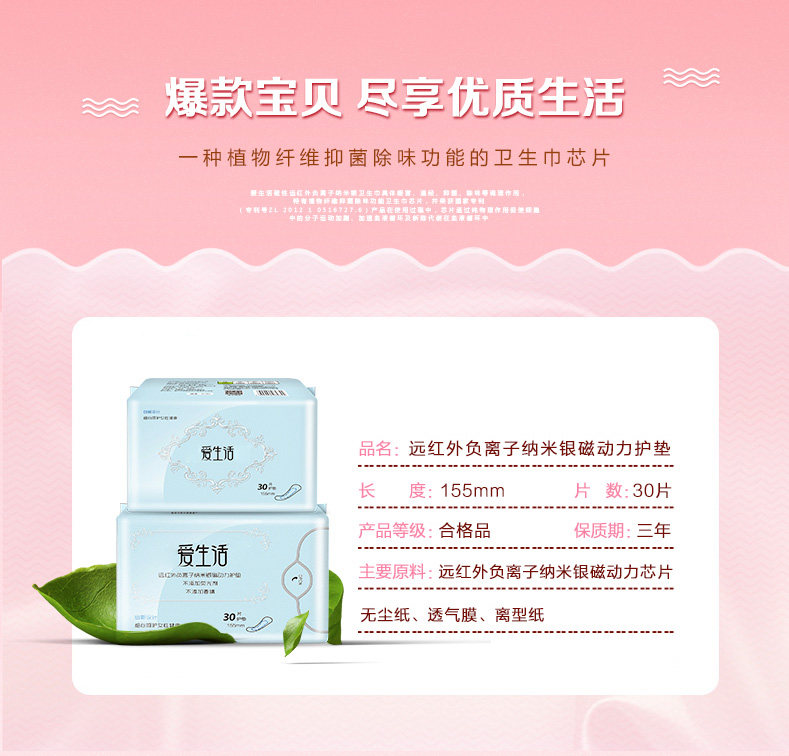 Green Leaf Love Life Pad 30 Ultra-thin Negative Ion Sanitary Cotton 5 Pack Combination Cotton Soft Skin