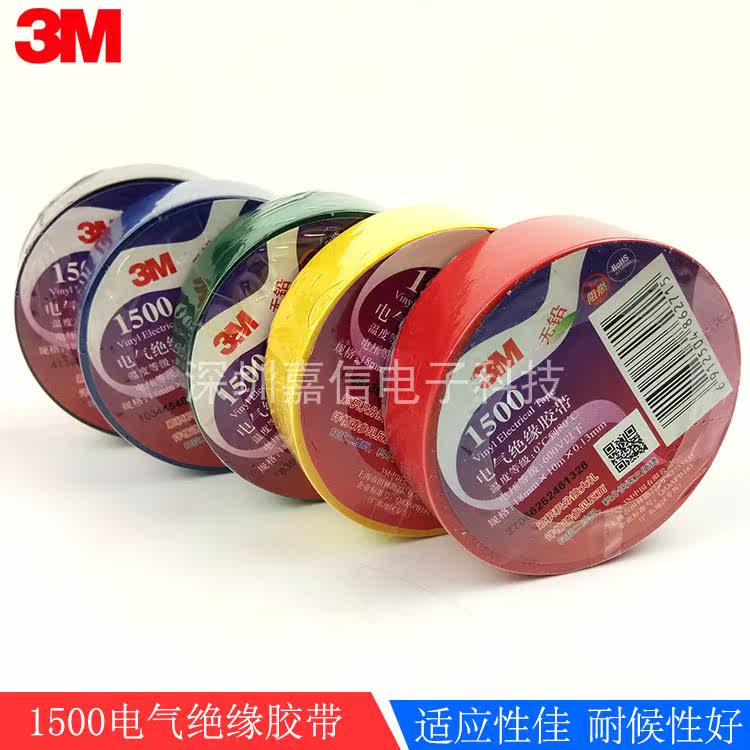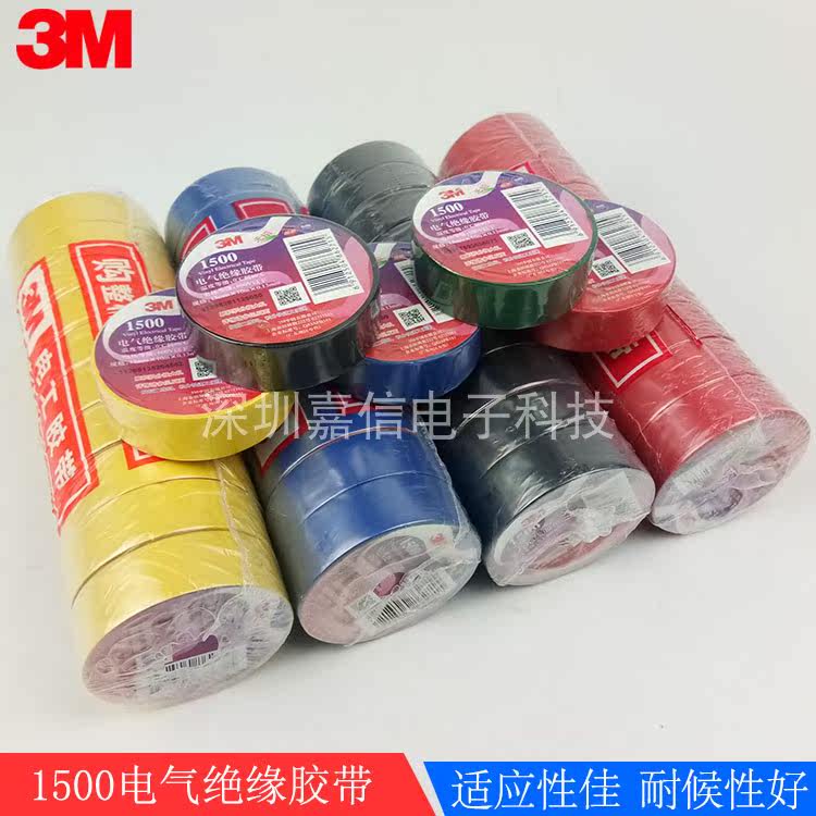 3M1500 electrician rubberized rubberized PVC electrical insulation adhesive tape resistant to acid-base lead-free black yellow blue green red white
