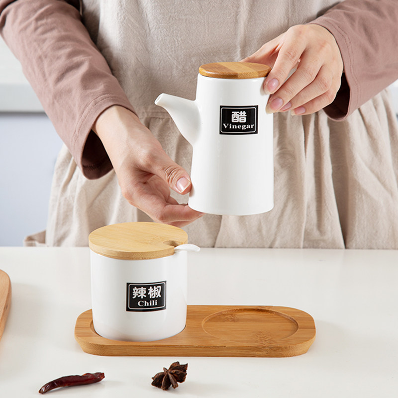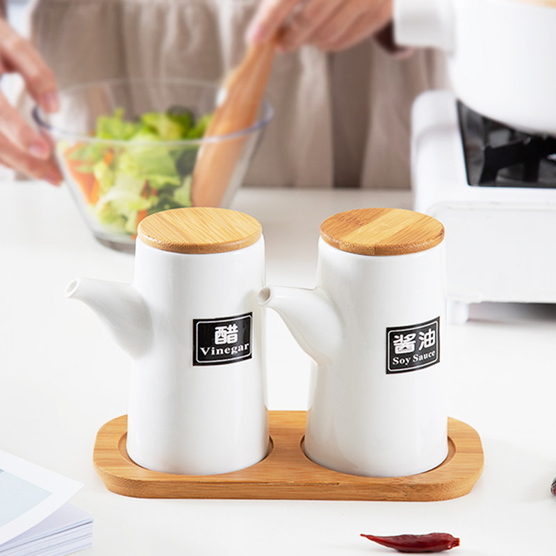 Seasoning bottle ceramic oil and vinegar tank dining room with creative soy sauce bottle vinegar bottle oil bottle set leak-proof household small oil bottle commercial