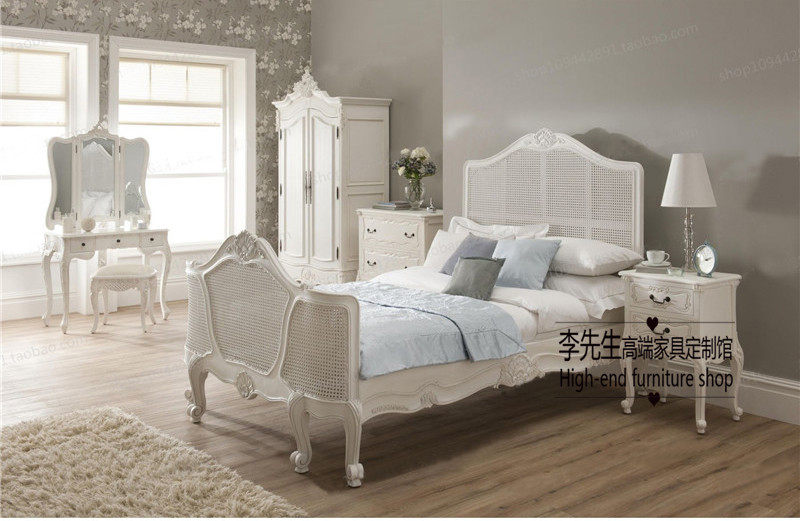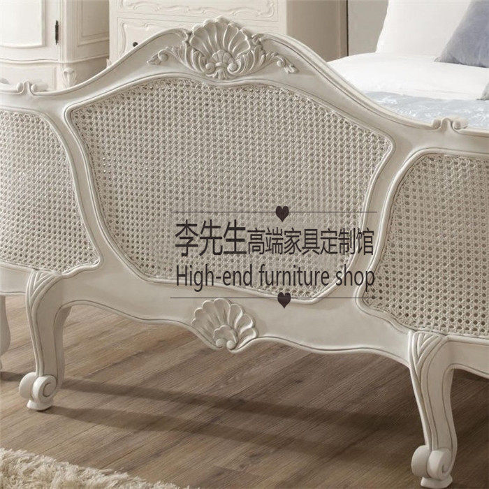 High-end custom furniture method style retro rattan bed rattan double man bed European and American style oak wood carved princess bed wedding bed-Taobao