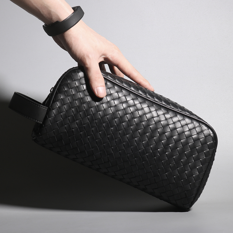 Hand Bag Men Genuine Leather Weave 2021 New Tide Men Type Clips Hand Grip Bag Men's Hand Grab Bag Hand Wash Toiletries
